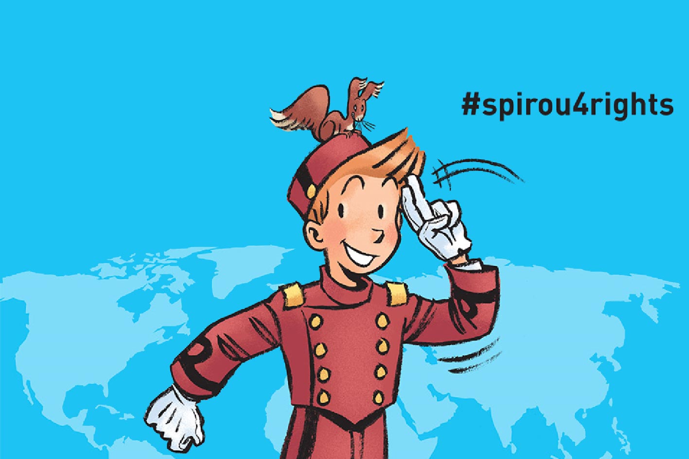 - Un signe de ralliement pour affirmer son engagement. Réunis sous le mot-dièse #spirou4rights, vedettes virtuelles, personnalités ou encore lecteurs de Spirou invitent chacun à faire entendre sa voix et à défendre les droits de l'Homme, en faisant le signe de Spirou.