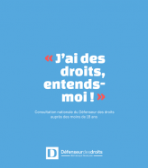 « J’ai des droits, entends-moi » est la consultation nationale du Défenseur des droits auprès des moins de 18 ans. Menée en partenariat avec près de 50 associations et structures luttant pour le respect des droits de l’enfant en France, elle a permis à 2200 enfants de faire entendre leur opinion sur la réalisation de leurs droits, afin de contribuer à l’amélioration de leur effectivité. Cette consultation a été initiée en vue de la tenue des 30 ans de la Convention Internationale des droits de l'enfant et pour mener à bien la mission de suivi du Défenseur des droits des recommandations du comité des droits de l'enfant de l'ONU.