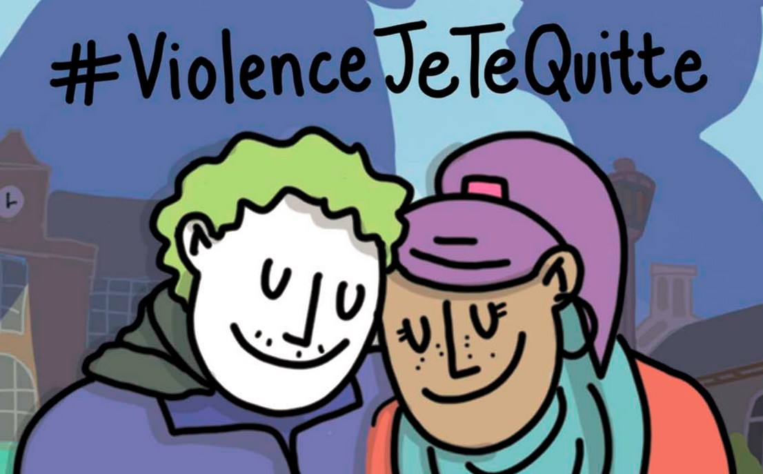 La campagne digitale #VIOLENCEJETEQUITTE a pour but de sensibiliser les jeunes au phénomène des violences au sein du couple et pour l’accès aux droits des jeunes victimes. Cette campagne explicite les différents types de violence au sein du couple et prend forme à travers une série de 4 mini BD constituées d’illustrations inédites de l’auteure-dessinatrice Lili Sohn.