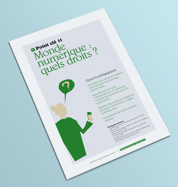 Le Défenseur des droits propose un manuel d’éducation au Droit, construit autour de onze points clés afin d’aider les enseignant·e·s et intervenant·e·s, notamment ceux du réseau Educadroit, à sensibiliser au Droit et aux droits les enfants et les jeunes.